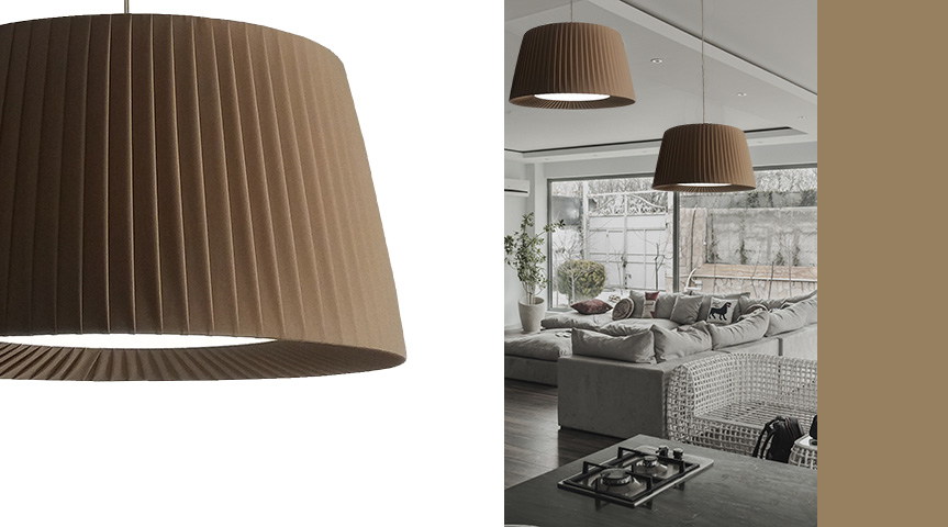 Luminaria con forma sugerente y estilo sólido, donde su volumetría y la textura que la envuelve adquieren especial protagonismo.